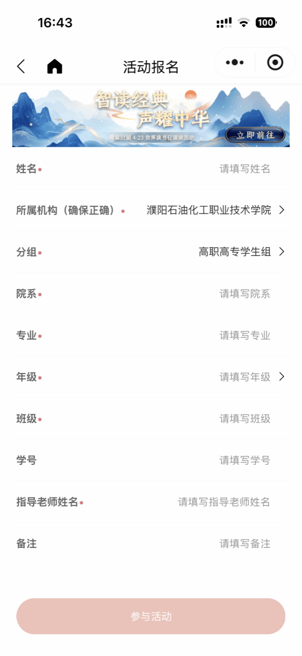 2.按照活动界面要求,填写真实的报名信息(注:报名信息仅用于赛事统计及后续颁奖联系,请放心填写);