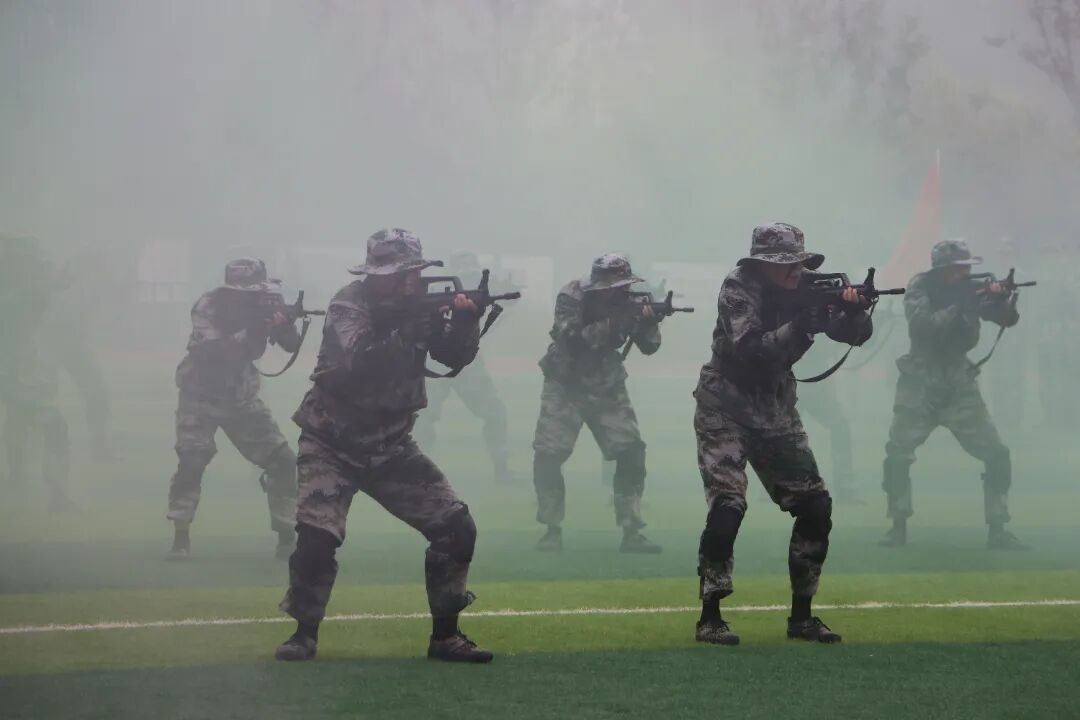 男子持枪战术方队阵型严整