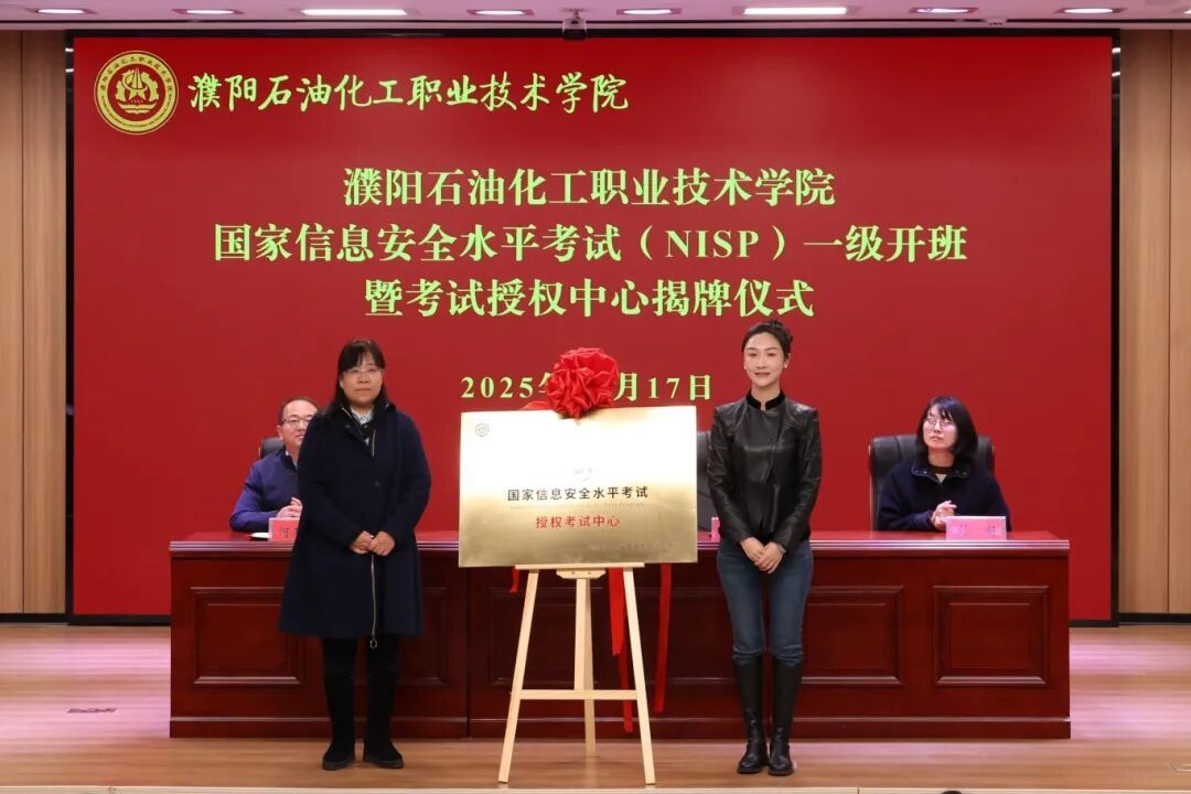 双方为学校国家信息安全水平考试(NISP)授权考试中心揭牌。