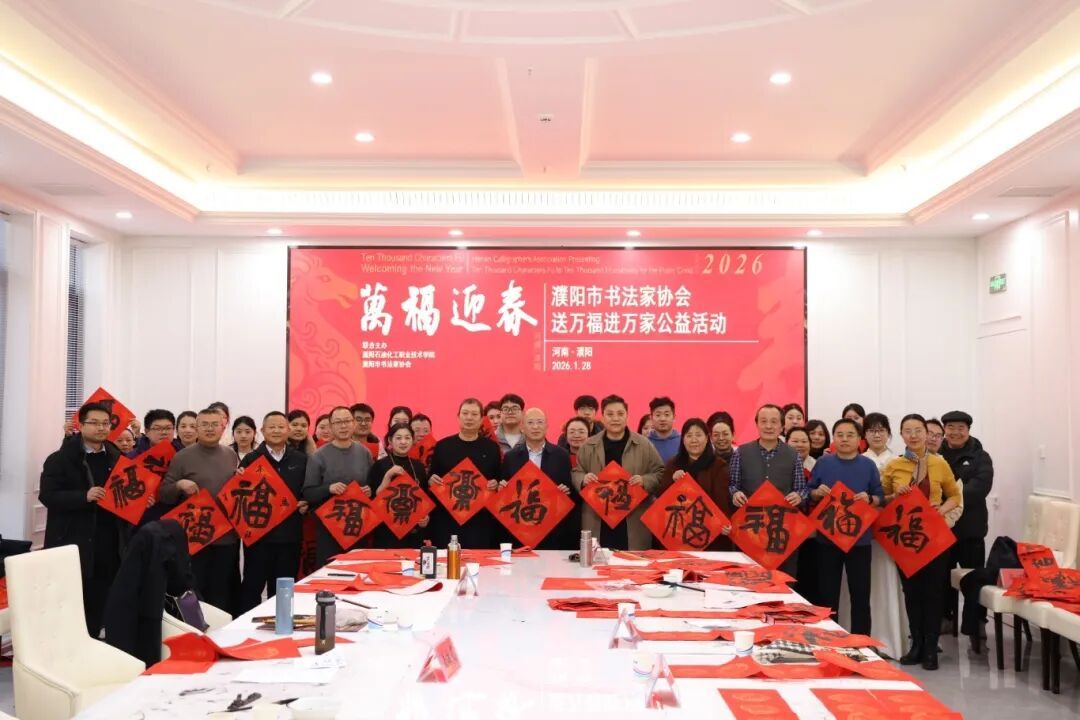 1月28日下午,由濮阳市书法家协会、濮阳石油化工职业技术学院联合举办的“万福迎春——濮阳市书法家协会送万福进万家公益活动”在我校图书馆对外交流室举行。十余名书法名家齐聚校园,以笔为媒,以墨为介,为师生现场书写新春联,送上新年的美好祝福。
