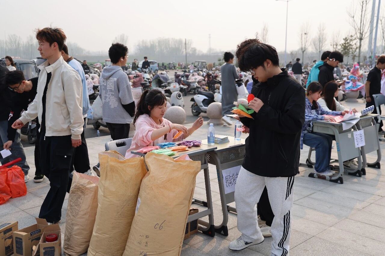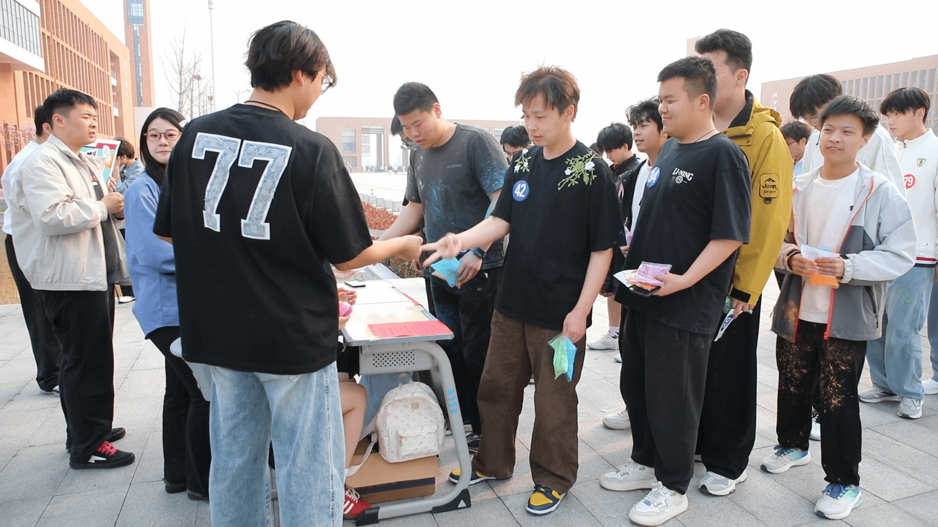 (参与者排队领取活动物品)