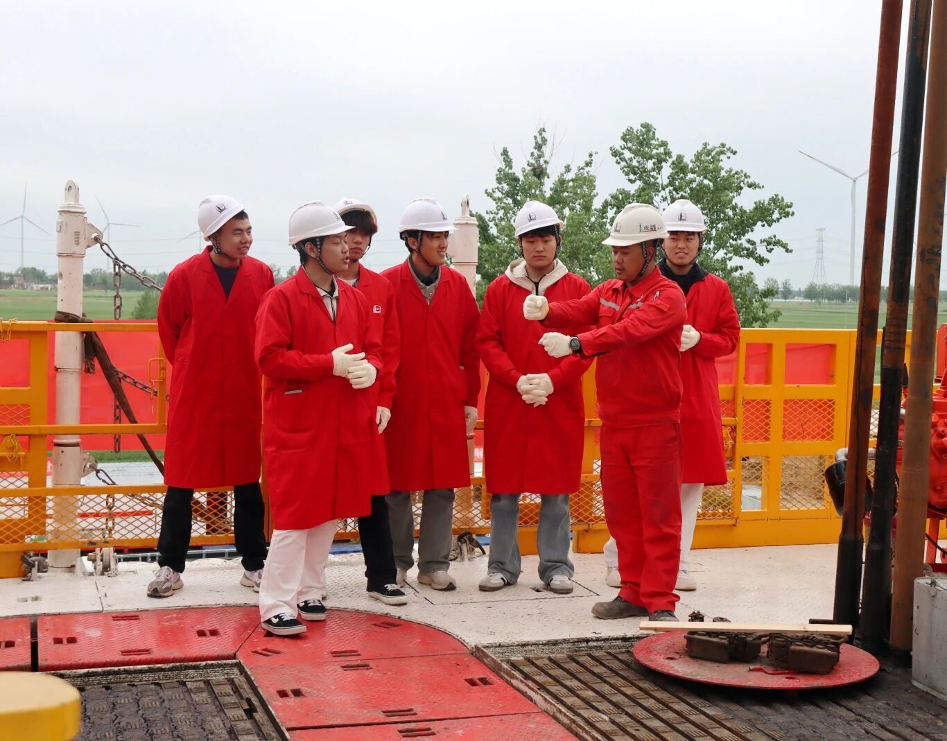 在作业一线,井队技术人员围绕钻井原理、设备运行、安全规范及绿色勘探技术进行了细致讲解,将课本知识与现场实景一一对应,并耐心解答同学们的疑问。师生近距离观摩现代化智能钻井设备,了解石油勘探开发全流程,真切感受到石油行业的科技进步与一线工作者的敬业精神。
