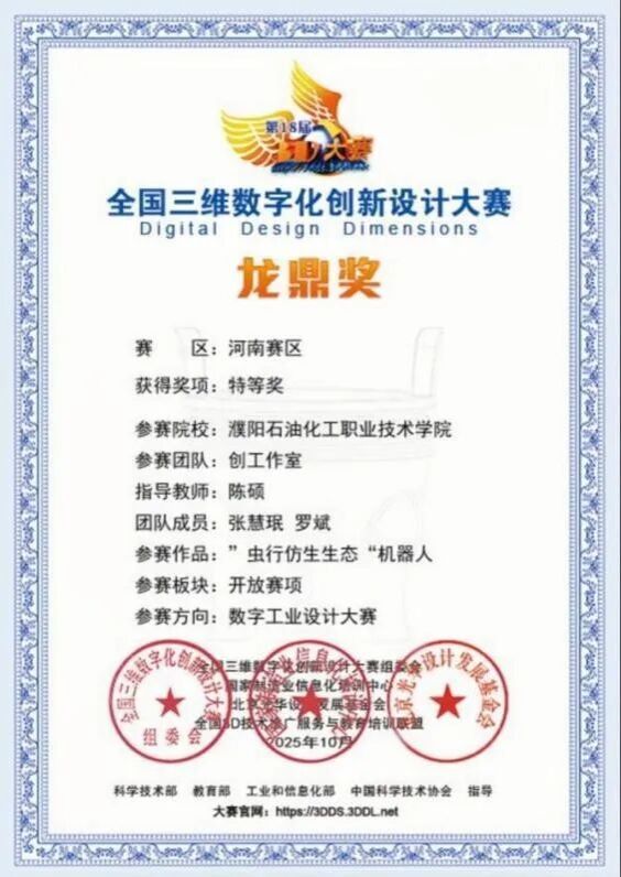 近日,濮阳石油化工职业技术学院学子在2025年全国三维数字化创新设计大赛河南赛区选拔赛中斩获省奖6项,其中特等奖1项。另在2025一带一路暨金砖国家技能发展与技术创新大赛首届综合能源利用及智能化技术赛项全国总决赛中荣获团体三等奖。